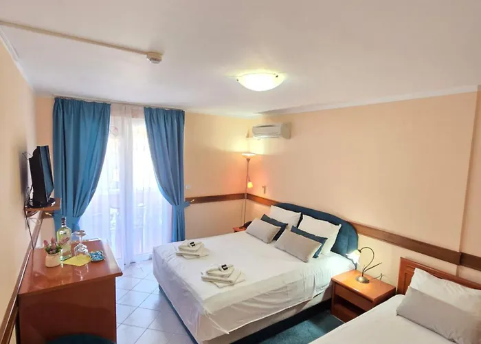 Remarquable pour son emplacement à 550 mètres de la Discothèque Trocadero Budva dans le quartier Slovenska Beach, l'hôtel donne accès à la Discothèque OMNIA, étant à 5 minutes d'allure. Une piscine sur le toit et salle de soins et sauna peuvent être profités à l'hôtel, situé près de Dukley Marina.